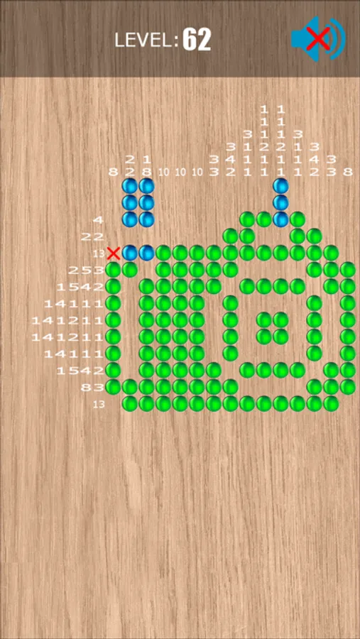 Your aim in these puzzles is to colour the whole grid in to red ball and clear blue ball. At the top of each column, and at the side of each row, you will notice a set of one or more numbers. These numbers tell you the runs of red balls in that row/column. So, if you see '10 1', that tells you that there will be a run of exactly 10 red balls, followed by one or more blank cell, followed by a single red ball. There may be more red balls before/after this sequence.