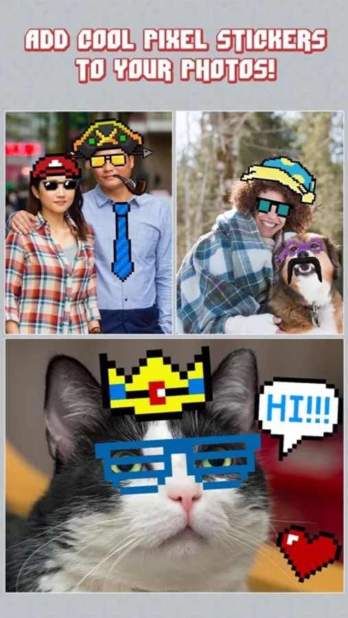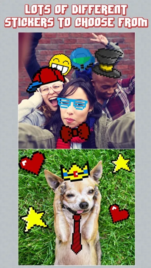 -Choose from over 102+ 8-bit style stickers to add to your photo