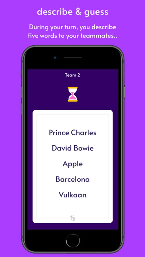 Half a Minute is a fun game that you can play with an infinite amount of players (at least 4). Each member of every team describes 4, 5 or 6 words (depending on the difficulty) within half a minute. The team that has the most knowledge and best tactics wins the game. guaranteed for a fun and hilarious evening!