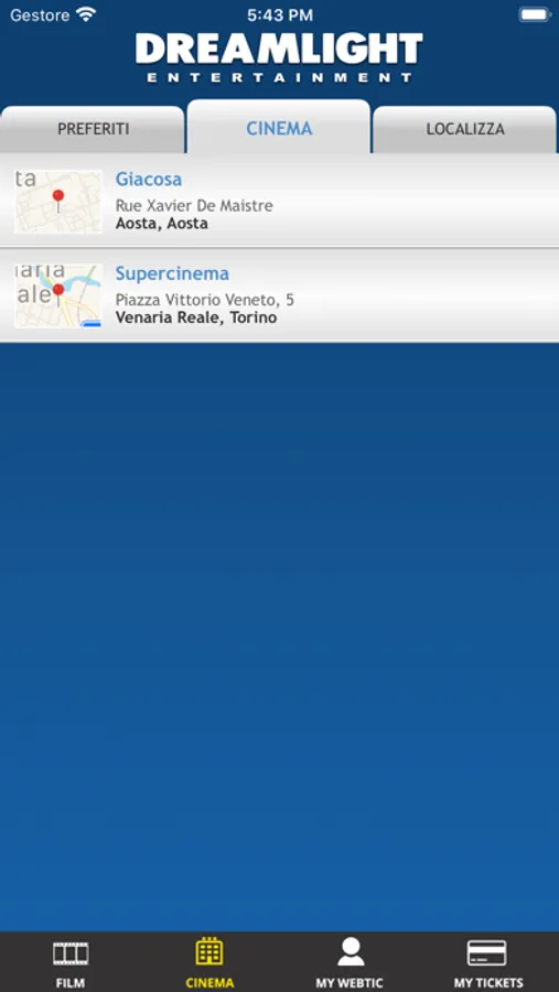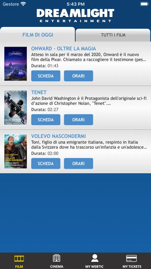Applicazione per iPhone e compatibile iPad per la prenotazione e l'acquisto dei posti nei cinema del prestigioso circuito: Dreamlight ( www.vogliadicinema.it)
