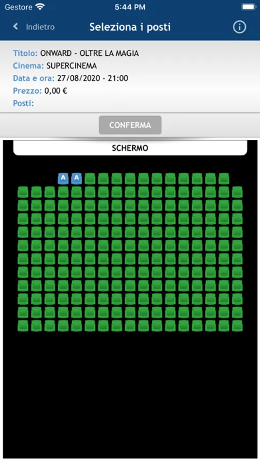 La prenotazione è possibile scegliendo i posti da mappa ed inserendo il proprio nominativo.