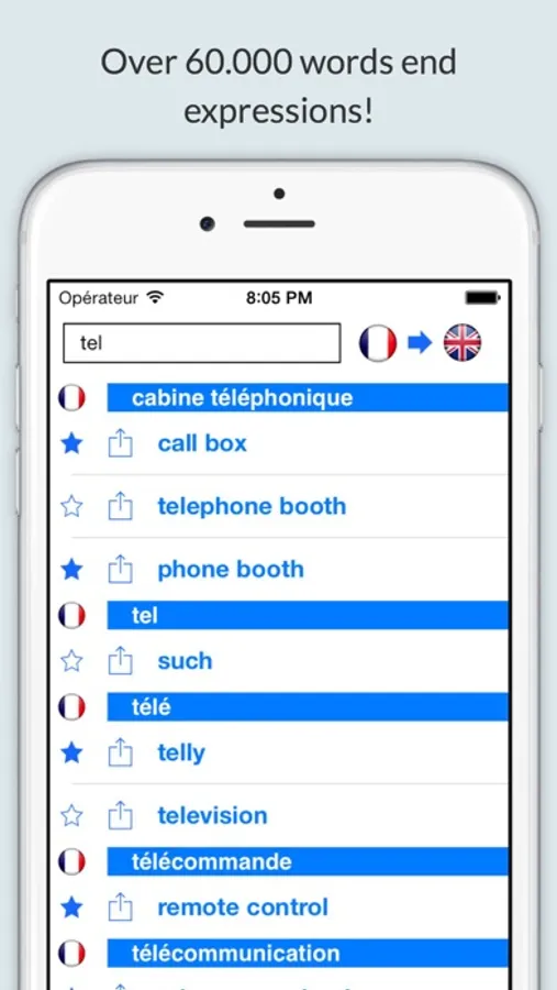 Offline English French Dictionary. Over 60.000 words end expressions!