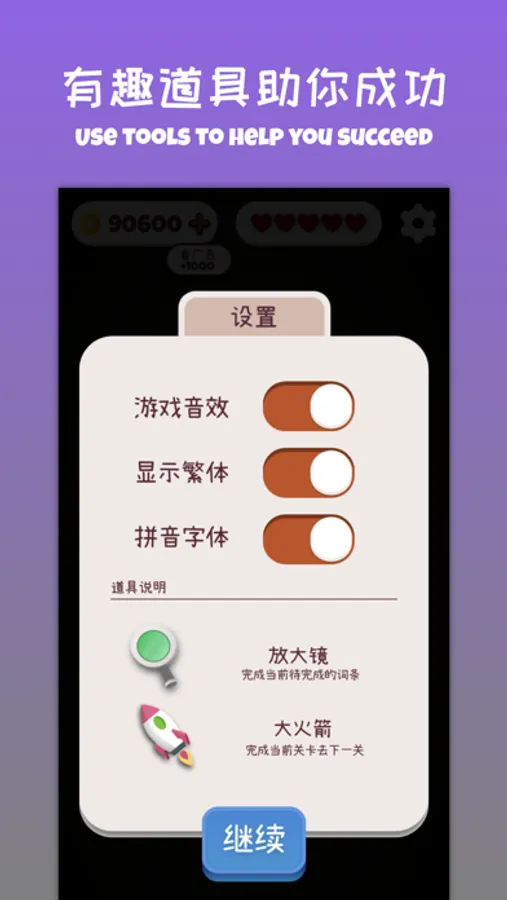 7、正确填对的词条可以获得金币奖励,每十关还可以获得道具奖励