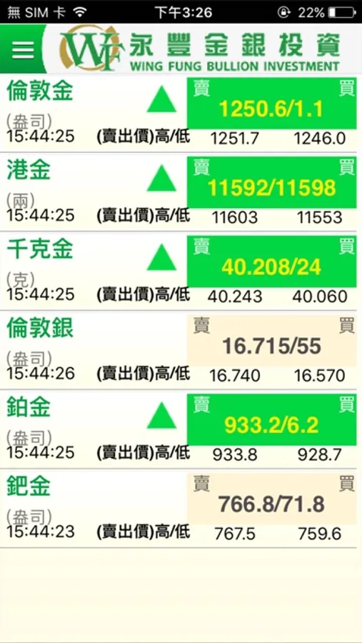 Wing Fung Bullion Investment Limited offers 24 hours unlimited precious metals margin trading services, including Loco London Gold (LLG), Loco London Silver (LLS), Hong Kong Gold (99 Gold), Platinum and Palladium.