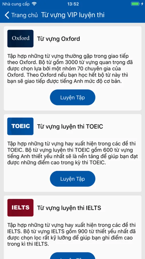 * Có các gói từ vựng luyện thi chất lượng cao.