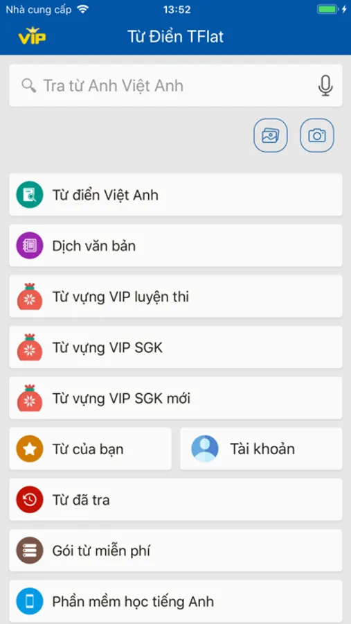 Từ điển TFlat có phát âm, dùng OFFLINE, có chức năng dịch văn bản Anh Việt, Việt Anh, dịch hình ảnh qua camera.