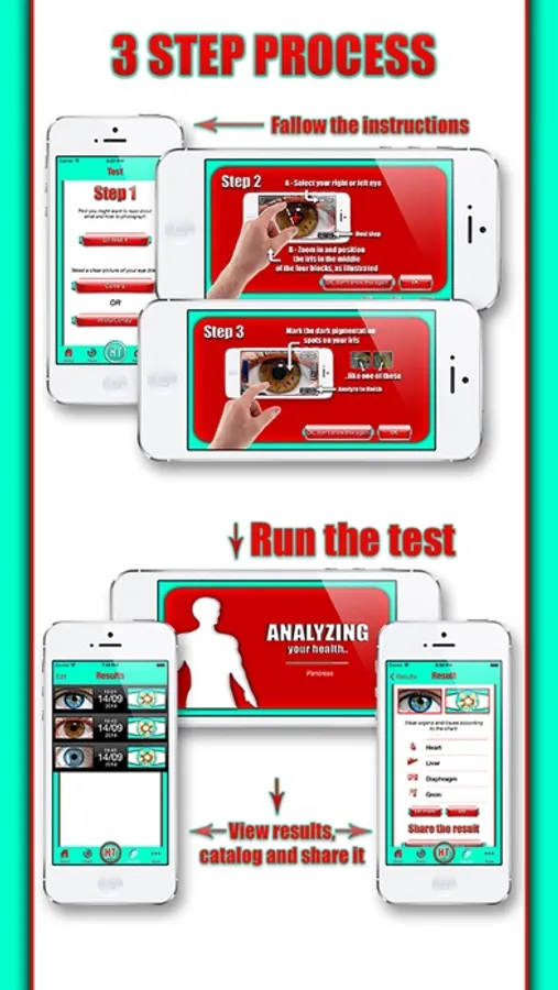How? Well, Egyptian, Chinese, Indian, Tibetan doctors and even the Nazis used this alternative medicine technique called iridology. And "Health Test" app is an automated iris diagnostics system that will match your iris photo to the iris chart, which divide the iris into zones that corresponds to specific parts of the human body. You wouldn’t believe how much your eyes can tell about your health, it’s all connected. Try and see it for your self! It’s amazing when you can read your self from your eyes.