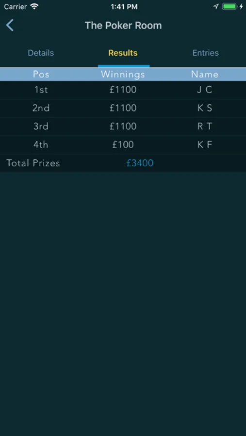 • Results – see a list of prize winners from previous poker tournaments.