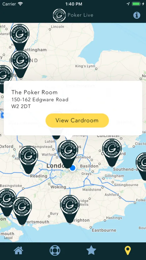 • Near Me – find the nearest Grosvenor casino running poker games based on your current location.