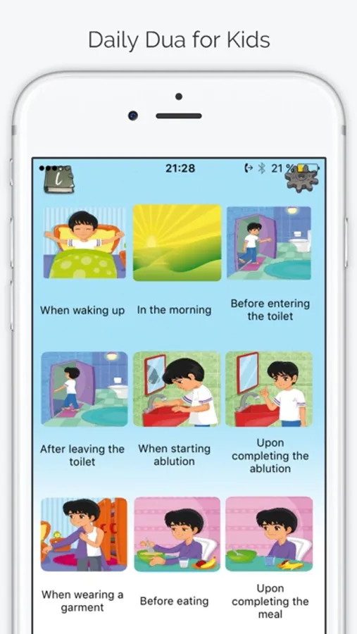 The app will help your kid in learning the most important duas for daily activities such as Dua for waking up and sleeping.....