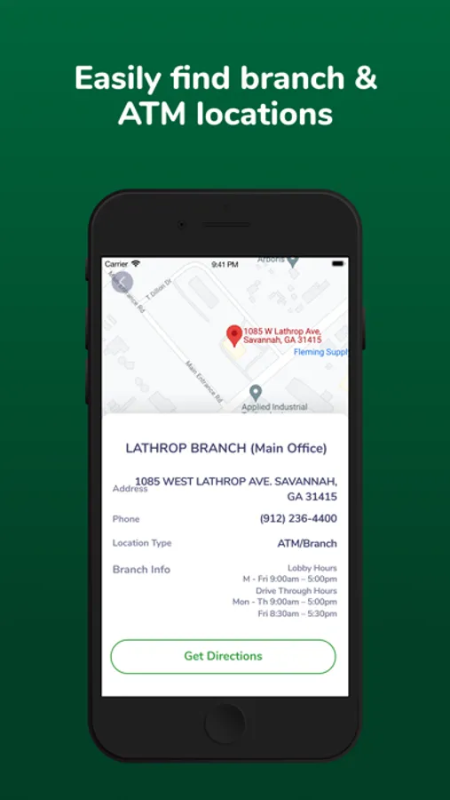 With a single click, you can find the fee-free ATMs near you and locate the closest Georgia Heritage branch. Our search map provides addresses and branch contact information.