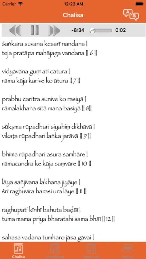 * Songs will be helpful for the beginners to learn the Hanuman Chalisa.