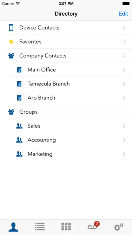 - iPhone contacts list integration for calls outside your organization