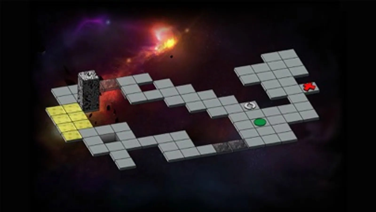 2) To move the block around the world, swipe left, right, up or down . Be careful not to fall off the edges. The level will be restarted if this happens.