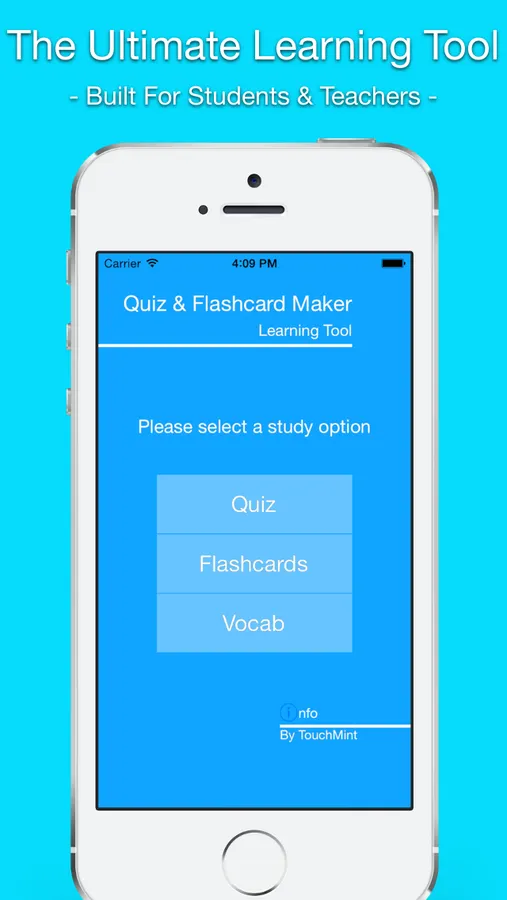 Study anywhere and anytime with Quiz and Flashcard Maker. Quiz and Flashcard Maker is a one of a kind app that allows you to create your own multi-choice questions, flashcards and vocab terms. This App was developed for both students and teachers to enhance learning and understanding of any subject. This app allows you to be actively involved in your learning. Research has shown actively individuals have a better understanding and retention of topics, which often results in better scores and grades.