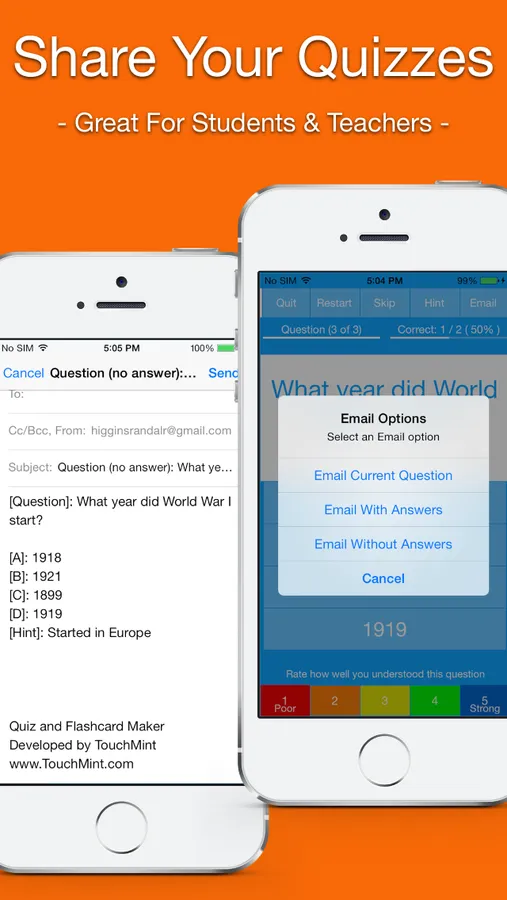 ►Integrated email system – Email your user created questions/flashcards so you can study anywhere!