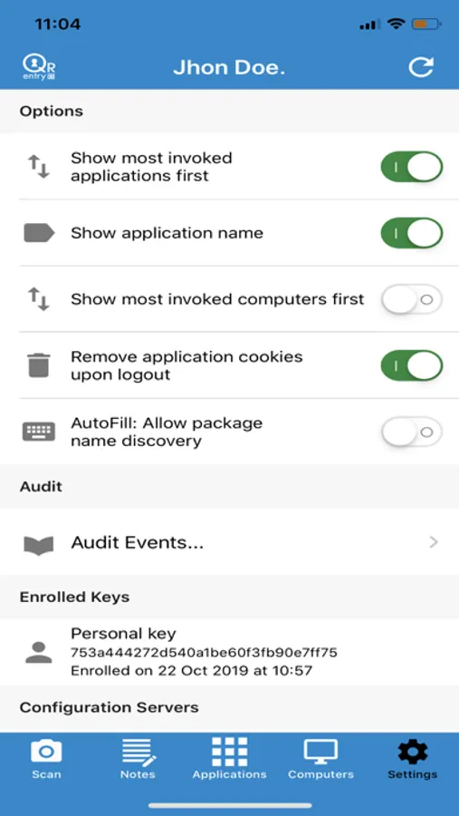 You can also use QRentry to store personal data: Wi-Fi keys, license number, private passwords... QRentry securely stores them in your own mobile device.