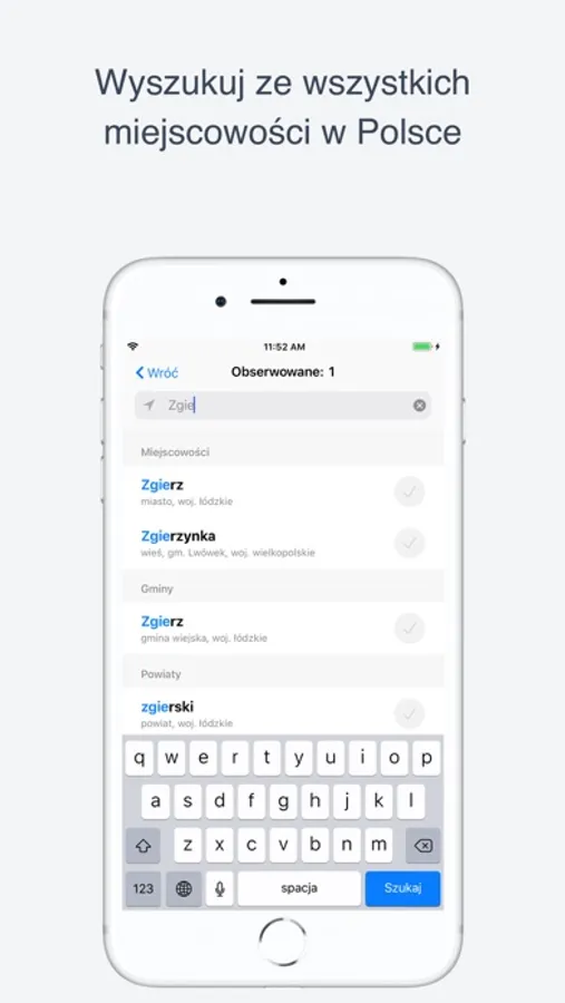 • Wygoda! Wybierz miejscowości, które chcesz obserwować, aby szybko dostać aktualności i informacje lokalne