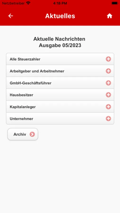 Damit Sie keine wichtige steuerrechtliche Information mit eventuellen Konsequenzen für Ihr Portemonnaie verpassen, hält Sie diese App über die steuerrechtlichen Entwicklungen in Gesetzgebung, Rechtsprechung und Finanzverwaltung auf dem Laufenden. Sie bietet dazu monatlich aktuelle Beiträge für z.B.