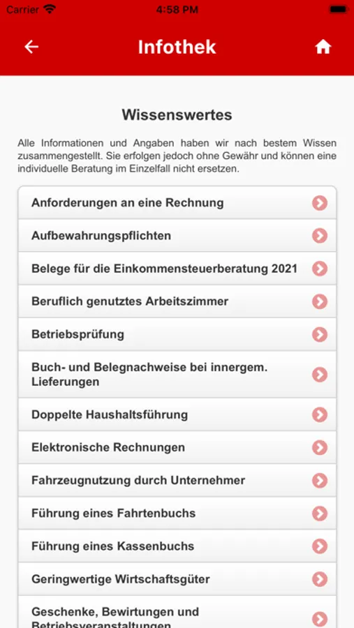 Diese kostenlose App als ein Service Ihres Steuerberaters liefert Ihnen monatlich steuerrechtliche Fachinformationen, hält Sie über fällige Steuerzahlungstermine auf dem Laufenden und bietet hilfreiche Antworten zu ausgewählten steuerrechtlichen Fragestellungen zum jederzeitigen Nachschlagen.