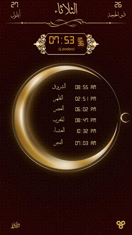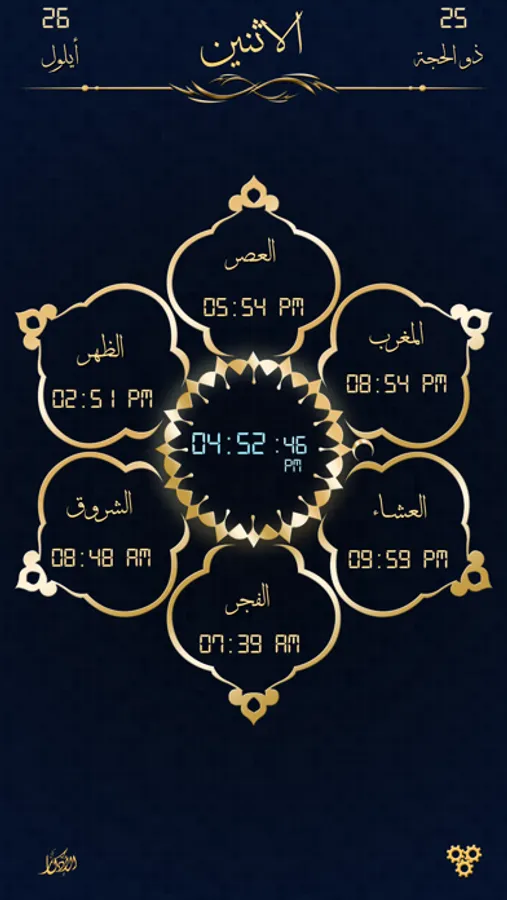 بمجرد فتح التطبيق تجد شاشة عرض رائعة تعرض لك إتجاه القبلة واوقات الصلاة والوقت المتبقي للصلاة القادمة والتاريخ الهجري.