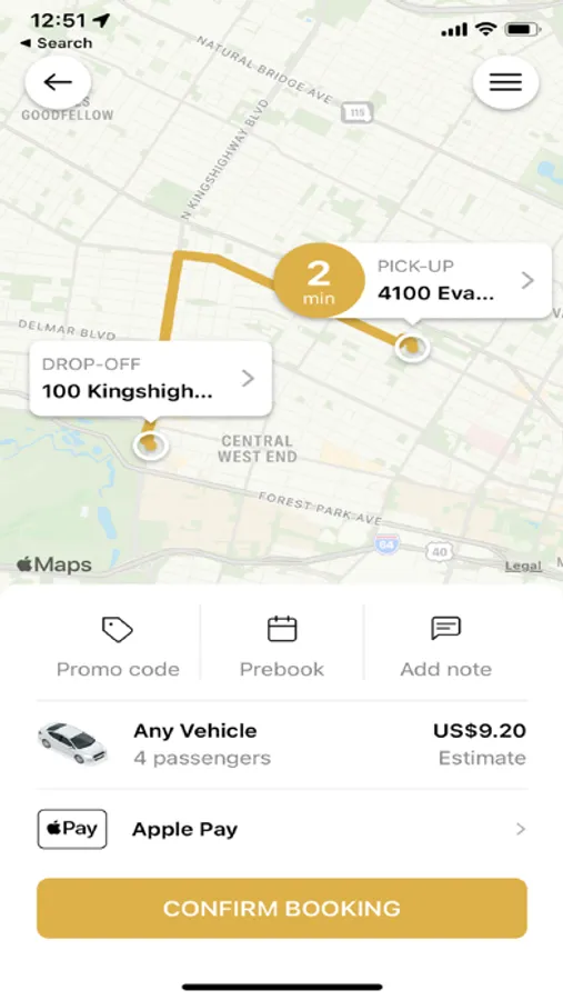 The St. Louis Taxi app retains a history of your previous reservations for expense management and to quickly rebook the same trip with the push of a button. You may also create a list of favourite locations (Home, Work, etc.) to speed up the booking process.