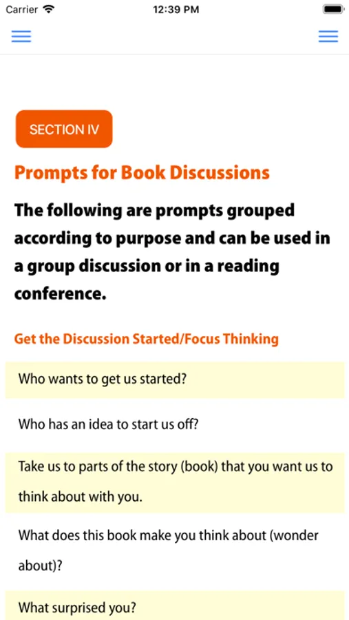 The prompts in this flip chart app are designed to help teachers demonstrate, prompt for, or reinforce effective reading behaviors related to comprehension including