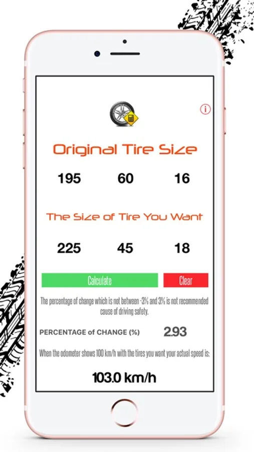 Which sized wheels / tires that you need to purchase automatically calculates and reports.