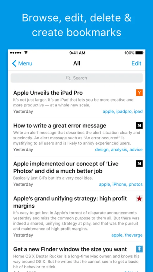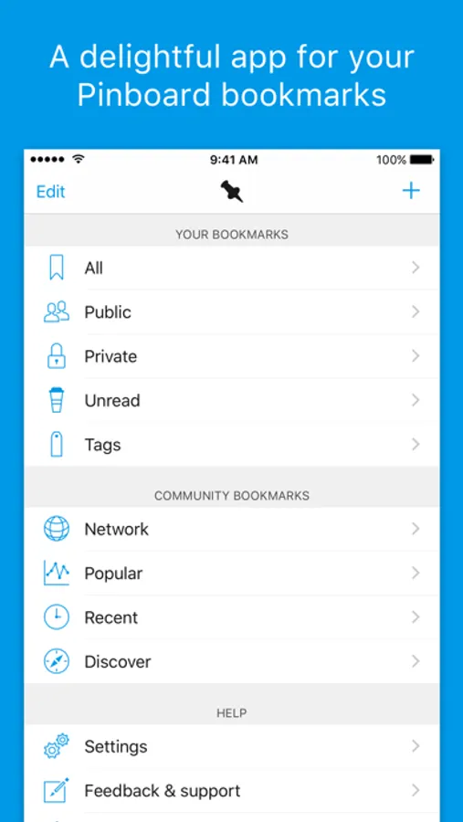 Pinner is a fast, full-featured app for your Pinboard bookmarks. Designed for all users of Pinboard, you can browse, edit, read, manage, and much more. Pinner has cutting-edge iOS integration including Share Extensions, Spotlight Search, Today Widgets, 3D Touch, and more.