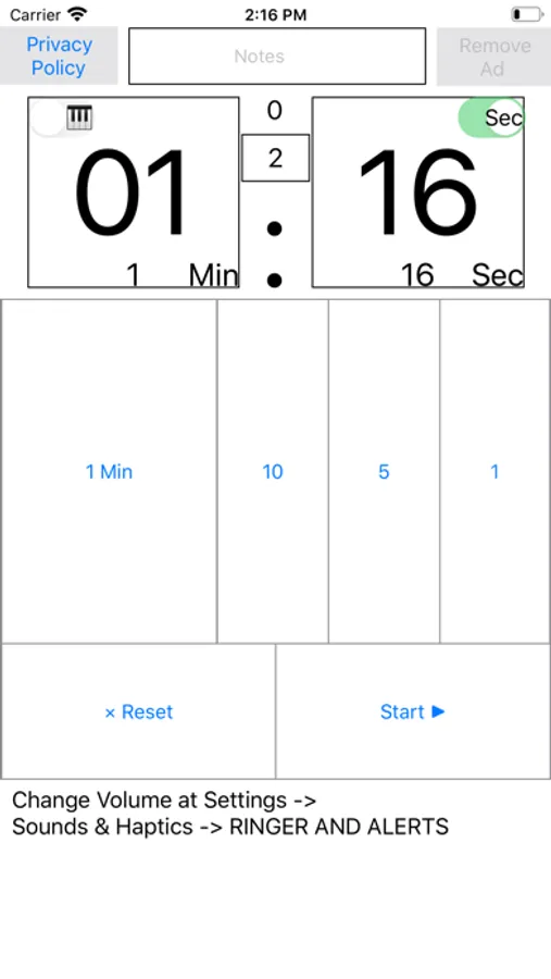 A simple interval timer free app with a one-line notes that repeats alarms and vibrations a specified number of times at fixed time intervals specified in minutes and seconds. You can switch between two types of sounds and select the presence or absence of a seconds count sound. Does not sleep during operation, does not operate on sleep screen / lock screen / background. For Kleperin test, muscle training exercise, presentation practice, talk time management.