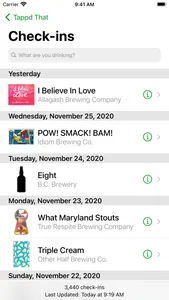 Do you remember all the beers you had at the alehouse with 90 rotating taps? You probably don't, but Tappd That sure does. Search venues by city and quickly browse all beers consumed on the premise, based on your check-ins. Check into those beers again with an additional tap.