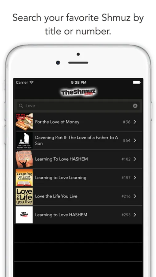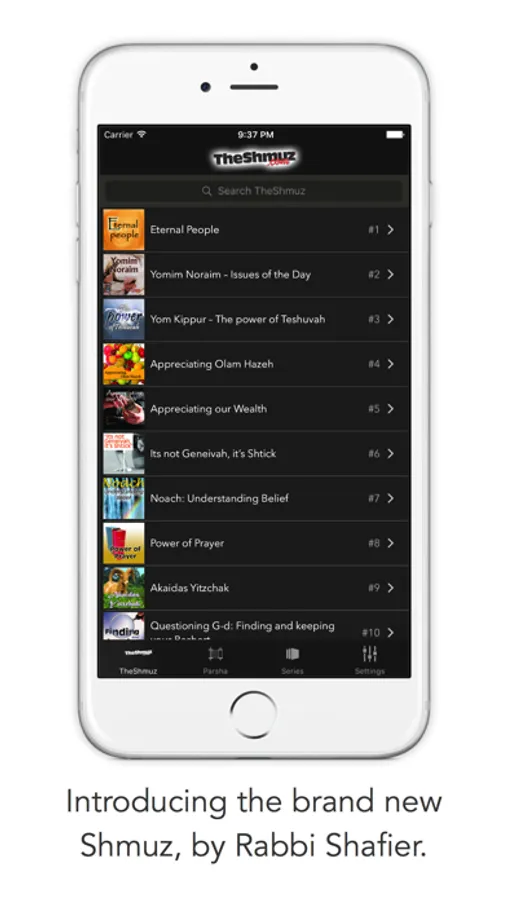 The Shmuz app allows you to access The Shmuz on the Weekly Parasha, listen to episodes of The Shmuz on your phone, and read articles written by Rabbi Shafier. You can save episodes of The Shmuz for later playback.