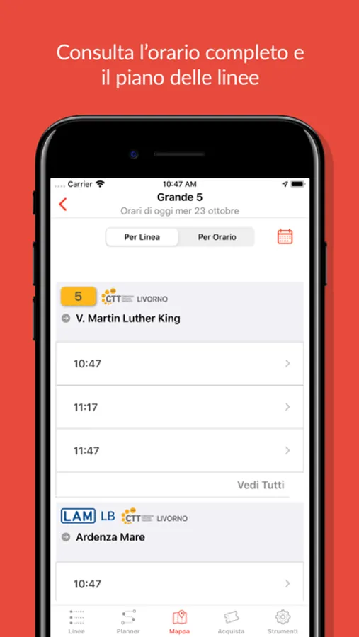 App per la consultazione degli orari del trasporto pubblico locale (su strada, su ferrovia e via mare) della Provincia di Livorno: