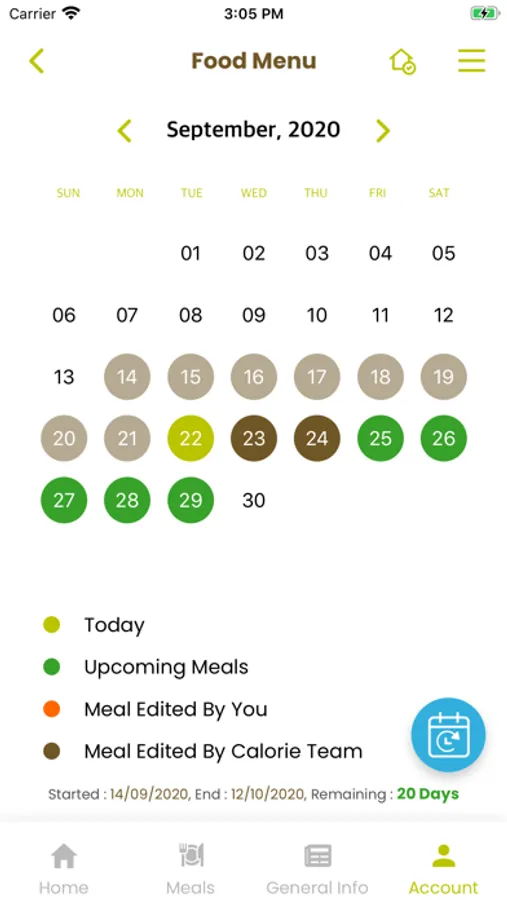 هذا البرنامج معد خصيصاً لمشتركين كالوري كونترول حيث يستطيعون من خلاله تبديل وجباتهم اليومية من ضمن قائمة مصورة من الوجبات الصحية اللذيذة. حيث يعرض البرنامج مقدار السعرات الحرارية لكل وجبة ولليوم كاملا اثناء قيامكم بتبديل الوجبات. كذلك تضم المعلومات قيمة الكاربوهيدرات والدهون والبروتينات لكل وجبة ولليوم بشكل اجمالي