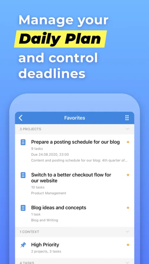 • Favorite tasks, projects and contents