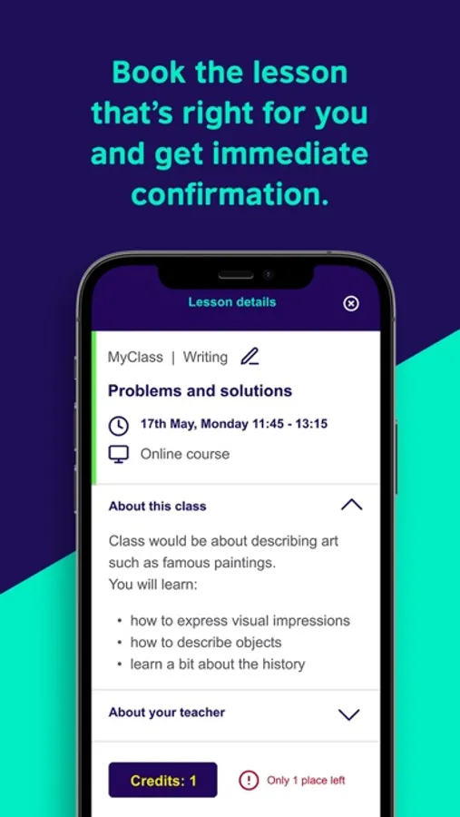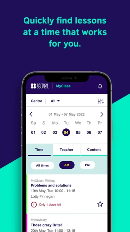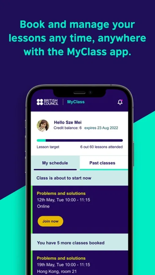 As a registered British Council MyClass student, you can book and manage your lessons any time, anywhere with the MyClass app.