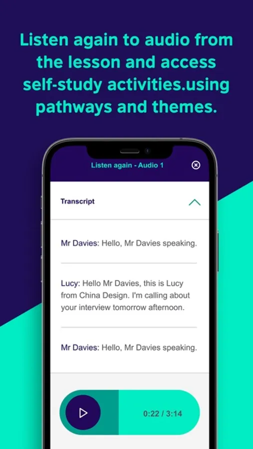 * After each class, listen again to the audio used in the lesson, and see the transcripts.