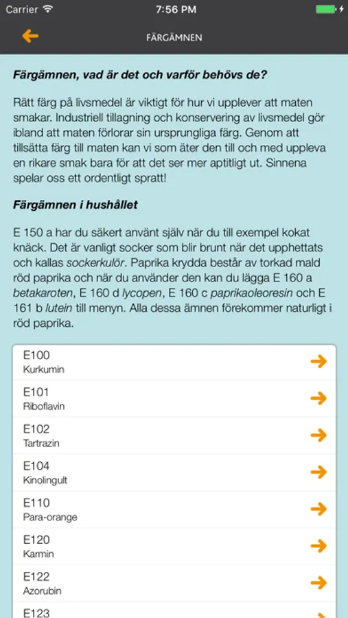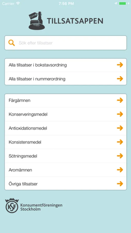 Alla tillsatser som används i livsmedel är testade, godkända och har bedömts som ofarliga vid normal användning. Trots det är många konsumenter bekymrade. Den här appen ger dig möjligheten att lära dig mer om livsmedelstillsatser. Den förklarar vad tillsatser är och varför de finns i vissa livsmedel. Med mer kunskap och med utgångspunkt i dina egna värderingar kan du sedan själv avgöra vilka tillsatser du vill undvika och vilka du kan se nyttan med.