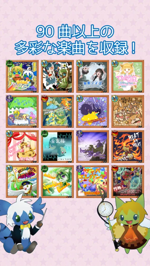 ゲームを始めるときに、音の妖精と呼ばれるキャラクターを1匹選んで、あなたのお供にすることができます。プレイ中は妖精があなたのプレイをアシストします!