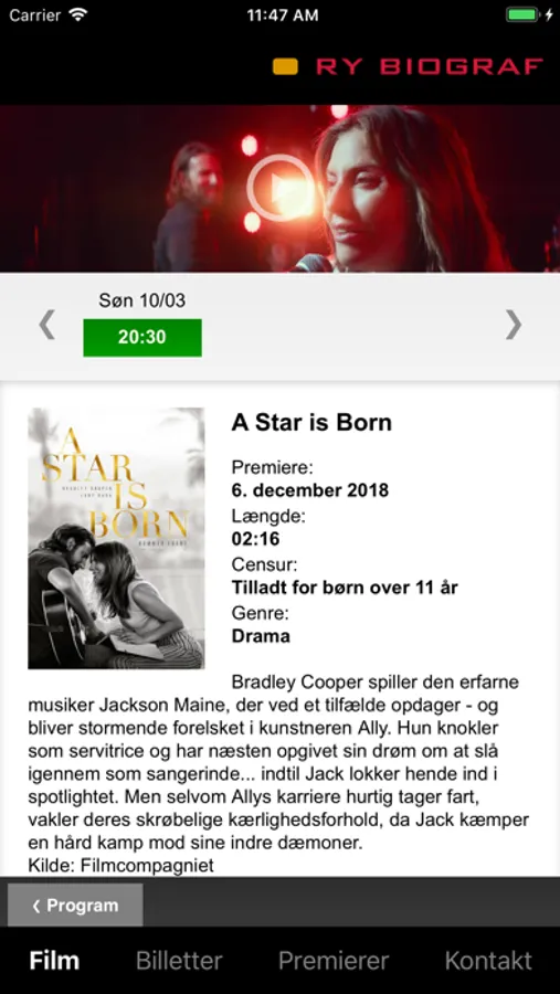 Med denne app har du mulighed for at gennemse programmet for Ry Biograf, samt se yderligere filminformationer som trailer, censur, medvirkende skuespillere, varighed m.m.