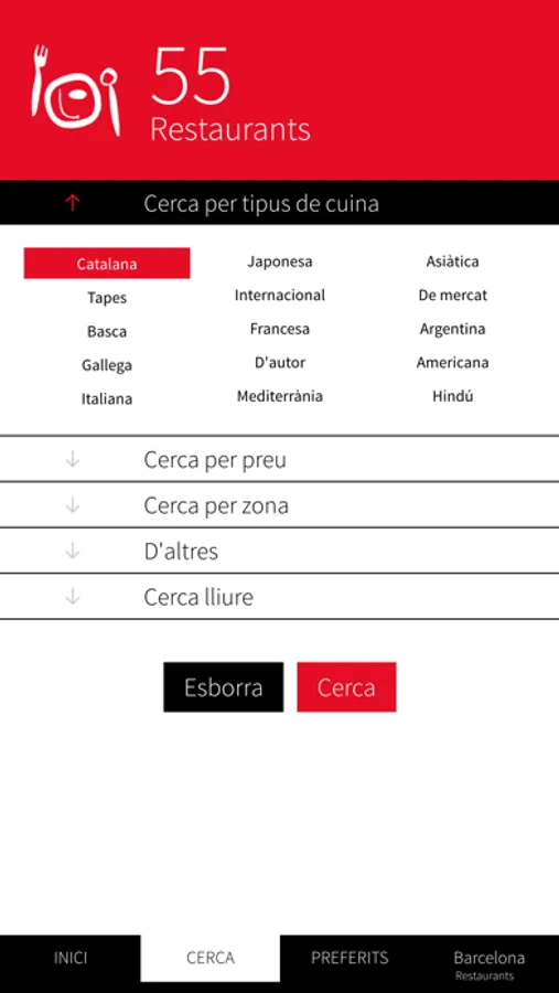 - Perform cross-referenced searches, simply and intuitively, according to different selection criteria: area, price, type of cuisine, name of restaurant and services (parking, terrace, accessibility, if it takes group bookings...)