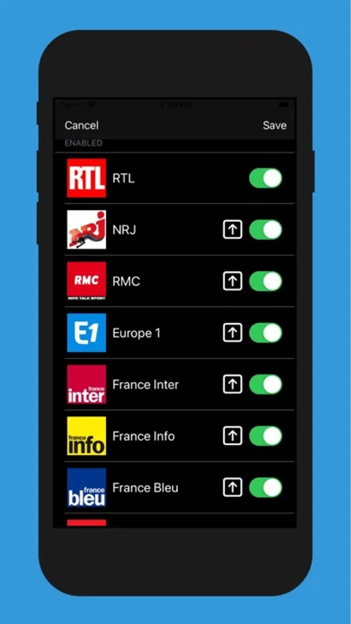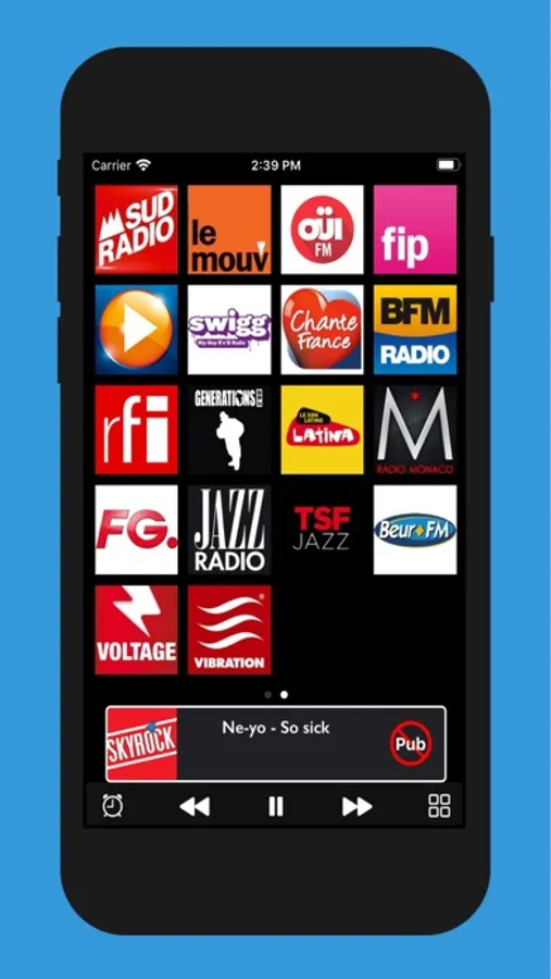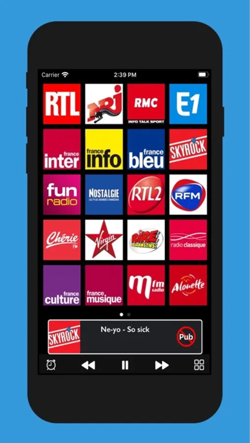 Radios France regroupe plusieurs stations de radios française dans une seule application.
