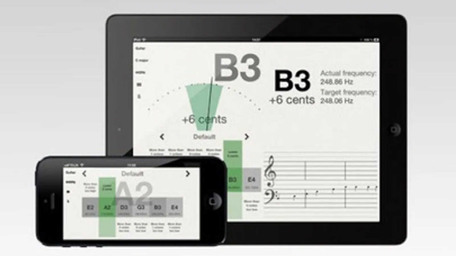 inTone comes with a free of charge intuitive tuning wizard that helps you to tune your selected instrument without knowledge of tuning. It also comes with a frequency graph and a vocal/singing range finder.