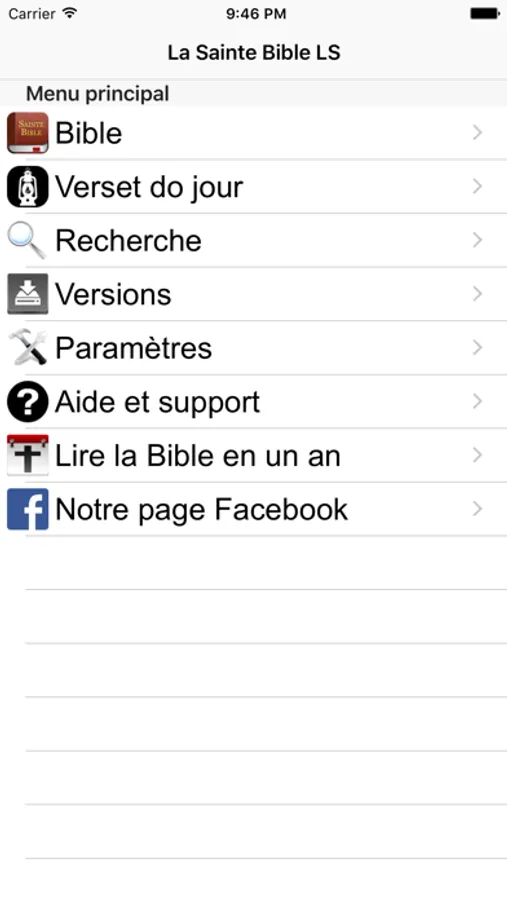 Téléchargez la Sainte Bible Gratuit et recevez un verset quotidien. Portez votre copie papier de Sainte Bible Gratuit avec vous à tout moment et en tout lieu que vous êtes ou souhaitez aller, et partagez la Parole de Dieu pour répandre la lumière et l'amour à vos proches. Sainte Bible Gratuit App propose des fonctionnalités conviviales impeccables qui feront de votre lecture quotidienne de la Bible une expérience merveilleuse.