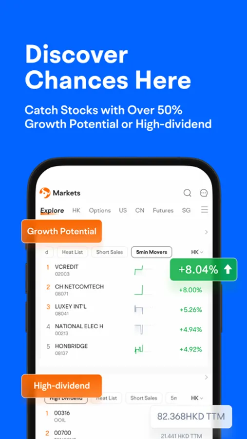 - You can make any investment decisions in any stock market of HK/US/CN/SG and other opportunities with one app.