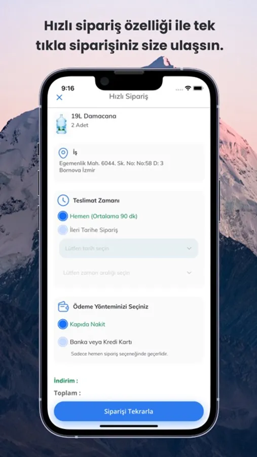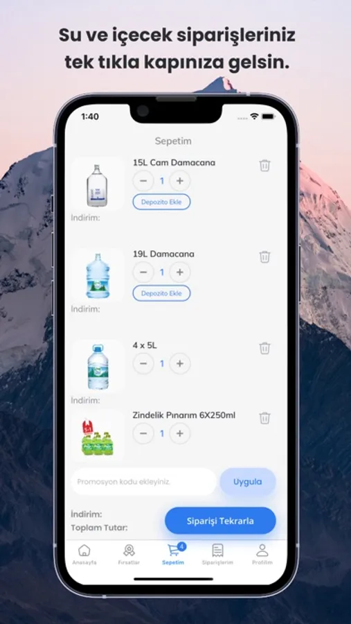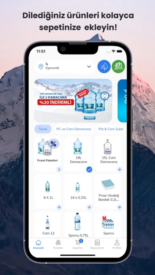 Yaşam Pınarım uygulaması ile cam ve polikarbon damacana su, pet sular, limonata çeşitleri, meyveli vitaminli ve doğal kaynak sulu gazlı içecekleri, fonksiyonel içecekleri ve maden suyu çeşitlerini online olarak hızlı ve uygun fiyatlarla sipariş edebilirsiniz.