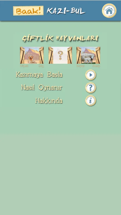Çiftlik Hayvanları: Çocuğunuz, ahır kapısını kazıyarak çiftlikte yaşayan hayvanları bulacak ve okunuşlarını öğrenip dinleyecektir. Ayrıca, hayvanların çıkardığı sesleri de dinleyebilecektir.