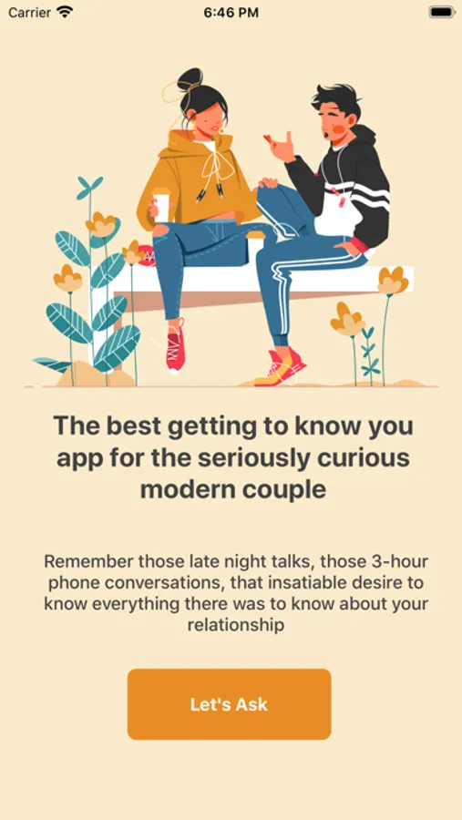 Curiosity is what drives connection. Whether you are just getting to know someone, or you have been together forever, curiosity is what keeps the spark alive. Whether you use our 1000 questions, or you add your custom questions to the app, Just Ask! has your back.
