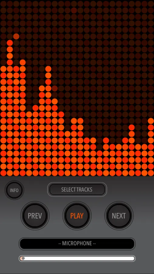 This app analyzes the audio from your microphone or via the built-in audio player. There are 4 types of visualizers in 6 colors, each visualizer can be scaled by pinching which determines the detail of the visualizer's grid. Especially this real-time scale function is very impressive, it gives you the ability to instantly tweak the visualizer to your preference.