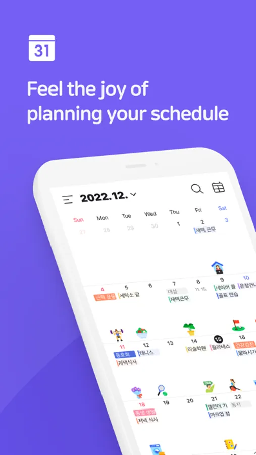 You can categorize each schedule/ anniversary type with different colors for a convenient use and give uniqueness to your schedule with various stickers.